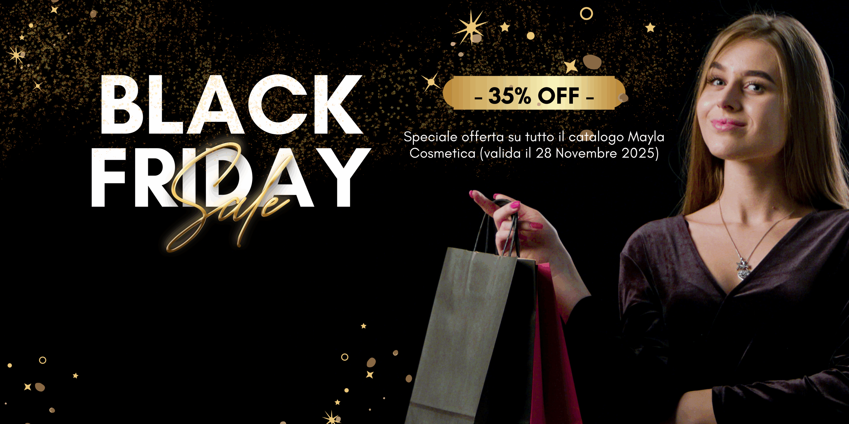Il 28 novembre 2025, preparati per l’evento di shopping più atteso dell’anno! Questo Black Friday, MaylaCosmetica ti offre un’opportunità imperdibile: il 35% di sconto su tutto il nostro catalogo. È il momento perfetto per scoprire e provare i nostri prodotti cosmetici naturali e sostenibili, che uniscono innovazione e tradizione per offrirti un’esperienza di bellezza unica.