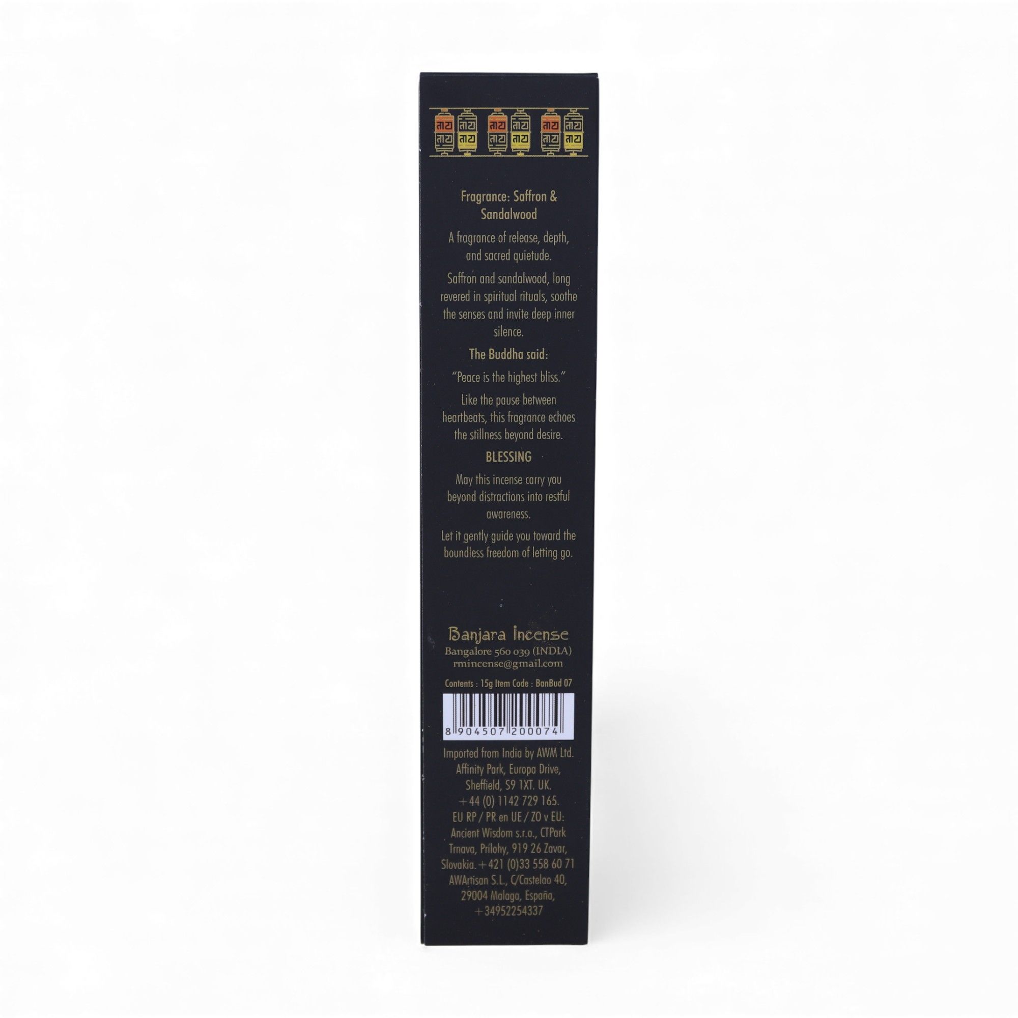 Banjara Buddha – Nirvana A fragrance created to inspire peace, reflection, and a sense of spiritual fulfilment. Nirvana incense transforms your space into a sanctuary for meditation and inner balance. Made in India from natural ingredients, these incense sticks burn slowly, releasing a rich, grounding aroma that lingers beautifully. Perfect for meditation, yoga practice, or simply relaxing at home, Nirvana helps transform any room into a sanctuary.The beautiful packaging featuring Buddha artwork makes it giftable as well as practical, appealing to both incense lovers and those exploring mindfulness or spiritual rituals.Whether for daily rituals, quiet evenings, or moments of reflection, Banjara Buddha Nirvana incense offers a meaningful way to add fragrance and serenity to your space.