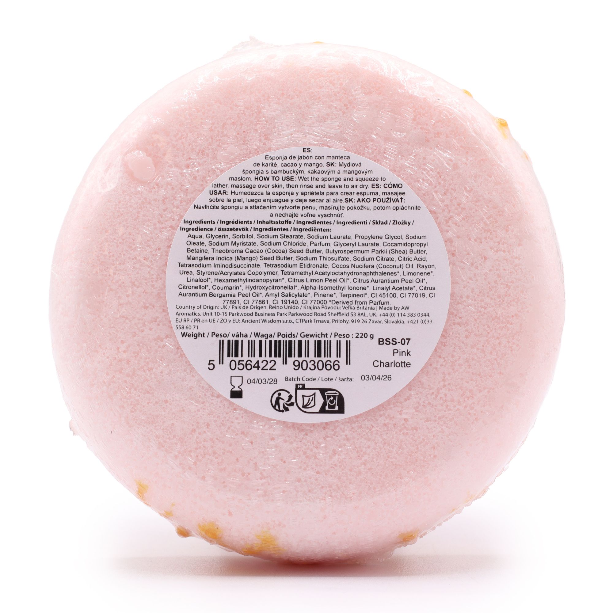 Add a touch of elegance to your daily routine with the Pink Charlotte Soap Sponge. Soft, delicate, and beautifully scented, it brings a gentle, uplifting feel to your shower while leaving your skin smooth and refreshed. This all-in-one sponge is pre-filled with rich, foaming soap that lathers instantly as you use it. The textured surface provides gentle exfoliation, helping to cleanse and soften the skin in one easy step.Enriched with Shea Butter, Cocoa Butter, and Mango Butter, it helps keep your skin nourished, hydrated, and silky-smooth after every wash – perfect for everyday indulgence.Light, pretty, and effortlessly effective, it’s ideal for those who enjoy a softer, more refined self-care experience.