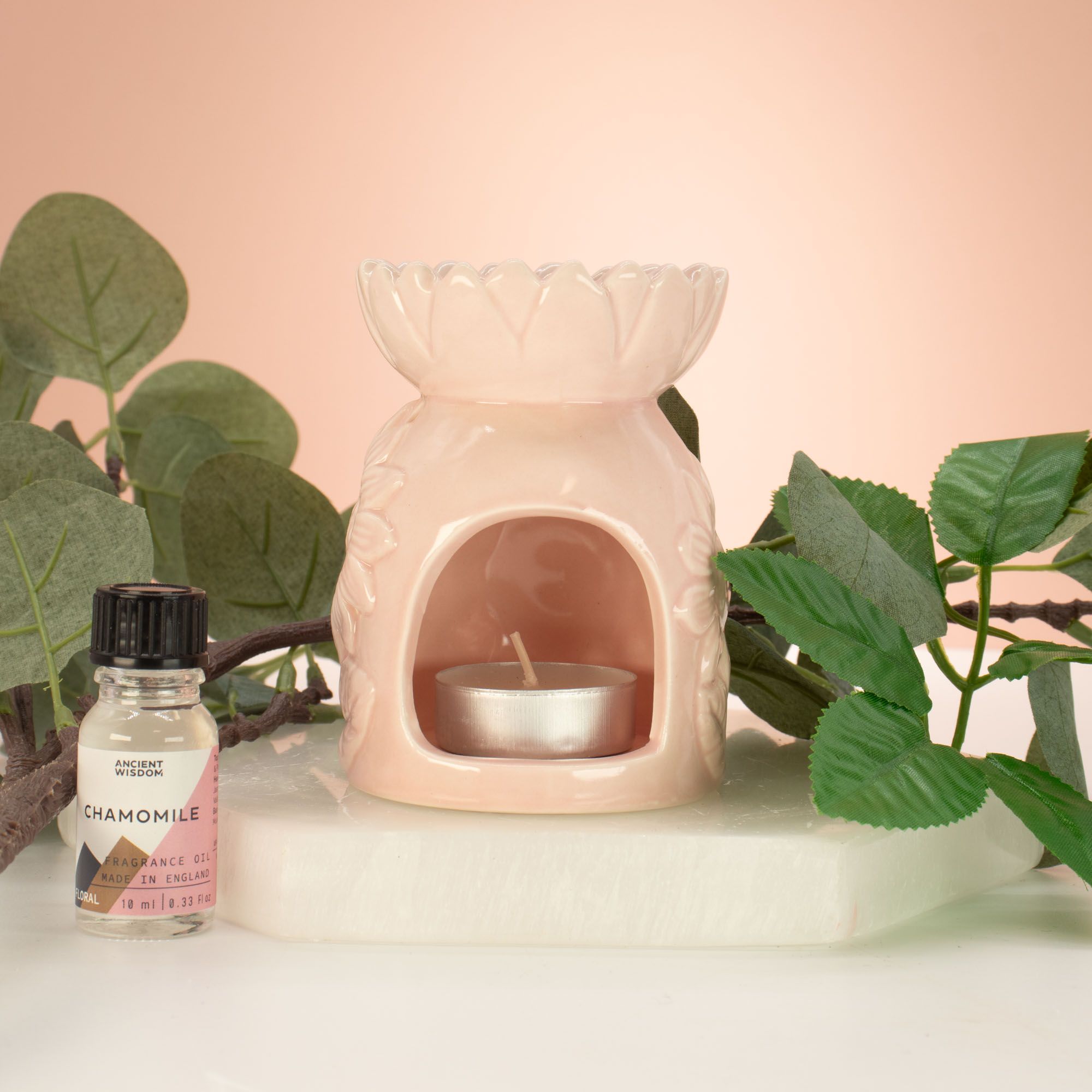Ceramic Sunflower Oil Burner – Pastel Pink