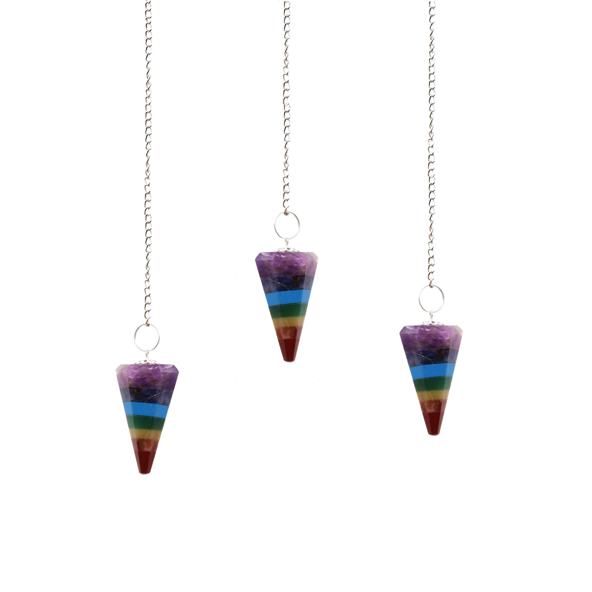 Dowsing or radiesthesia is believed to date back over six thousand years. The Egyptians and ancient Chinese were early practitioners. Crystal dowsing can be performed in many ways and it is claimed for all sorts of purposes, such as finding water, minerals, missing people and even lost objects. It is also used in healing, reiki and divination.These crystal pendulums are unique, different cuts, different stones… different energy. Fitted with a silver chain & gemstone bead at the top end they really do have something quite magical about them. Ideal for dowsing and divining. Each outer consists of pendants of different shapes.PLEASE NOTE –  Some of these pendulums are handmade from a natural product. Because of this, the sizes of the gemstone pieces may vary. assortments are depended on current stock levels. assortments are at random and you may receive duplications.