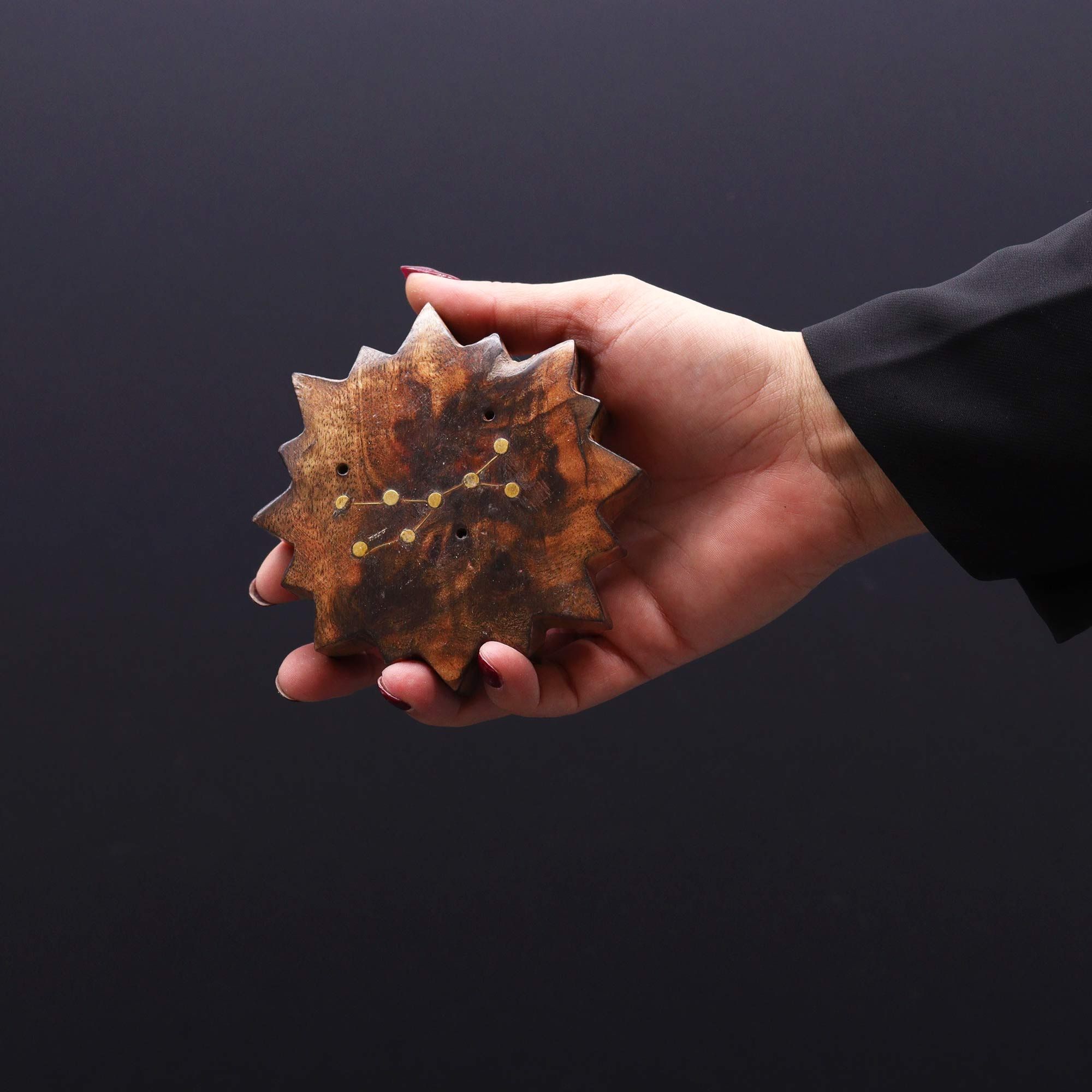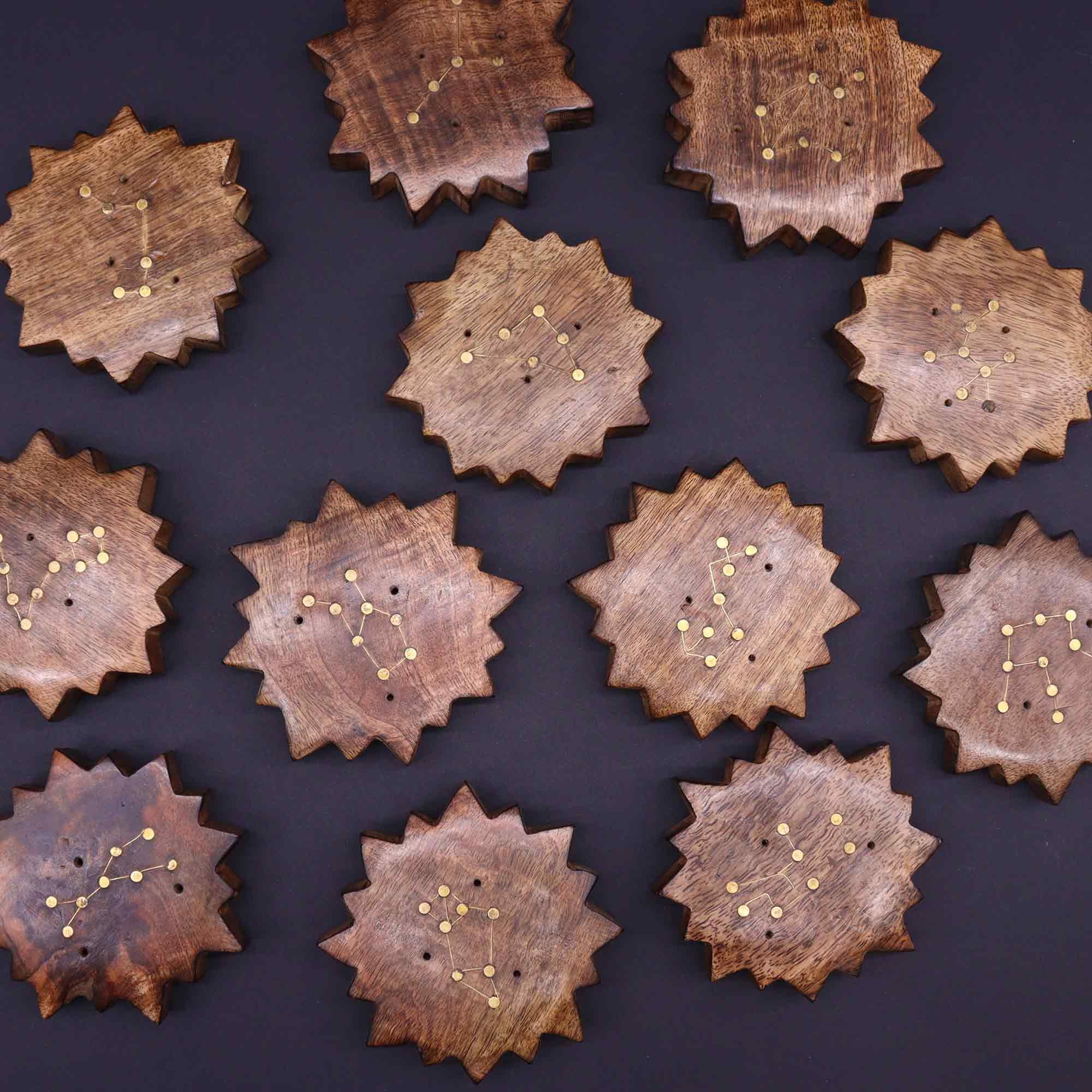 Introducing our captivating Set of 12 Engraved and Brass Zodiac Sign Incense Burners – Sun, a distinctive collection that seamlessly blends artistic craftsmanship with the allure of astrological symbolism. Each burner is skillfully shaped like a radiant sun, featuring finely detailed zodiac signs and adorned with a lustrous layer of brass.This unique set is crafted to resonate with astrology enthusiasts, providing a tangible and visually striking means to connect with their zodiac signs. The sun-shaped design imparts a touch of celestial elegance, symbolizing the radiant energy associated with the zodiac, while the meticulous engravings underscore our dedication to quality and precision.Forged from premium materials, these burners serve not only as functional pieces but also as exquisite works of art. The brass embellishment introduces a layer of sophistication, creating a harmonious interplay between the sun-shaped base and the intricately engraved zodiac sign.Presenting the Set of 12 Engraved and Brass Zodiac Sign Incense Burners – Sun offers your customers a unique and personalized choice for astrology enthusiasts. This set is perfect for those seeking meaningful and decorative items that resonate with their astrological identity.Sold as a unit of twelve.