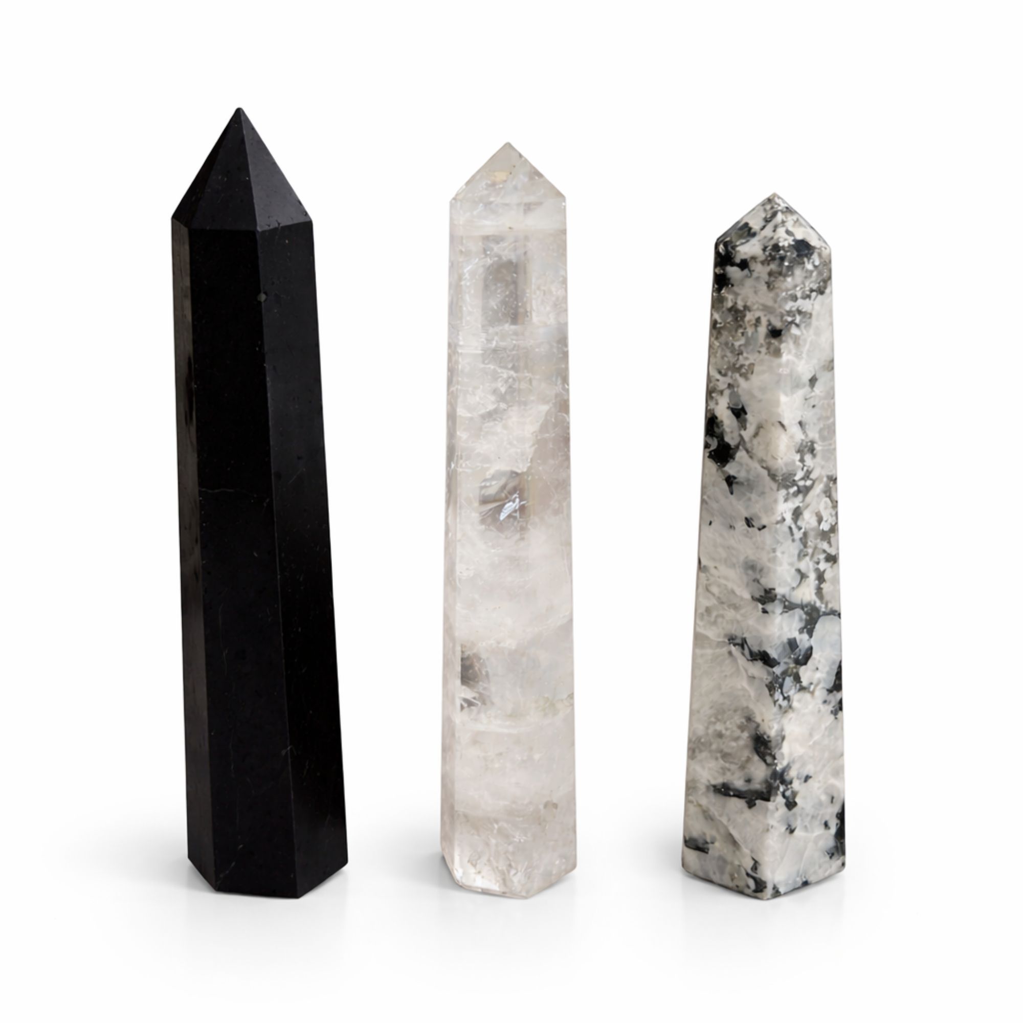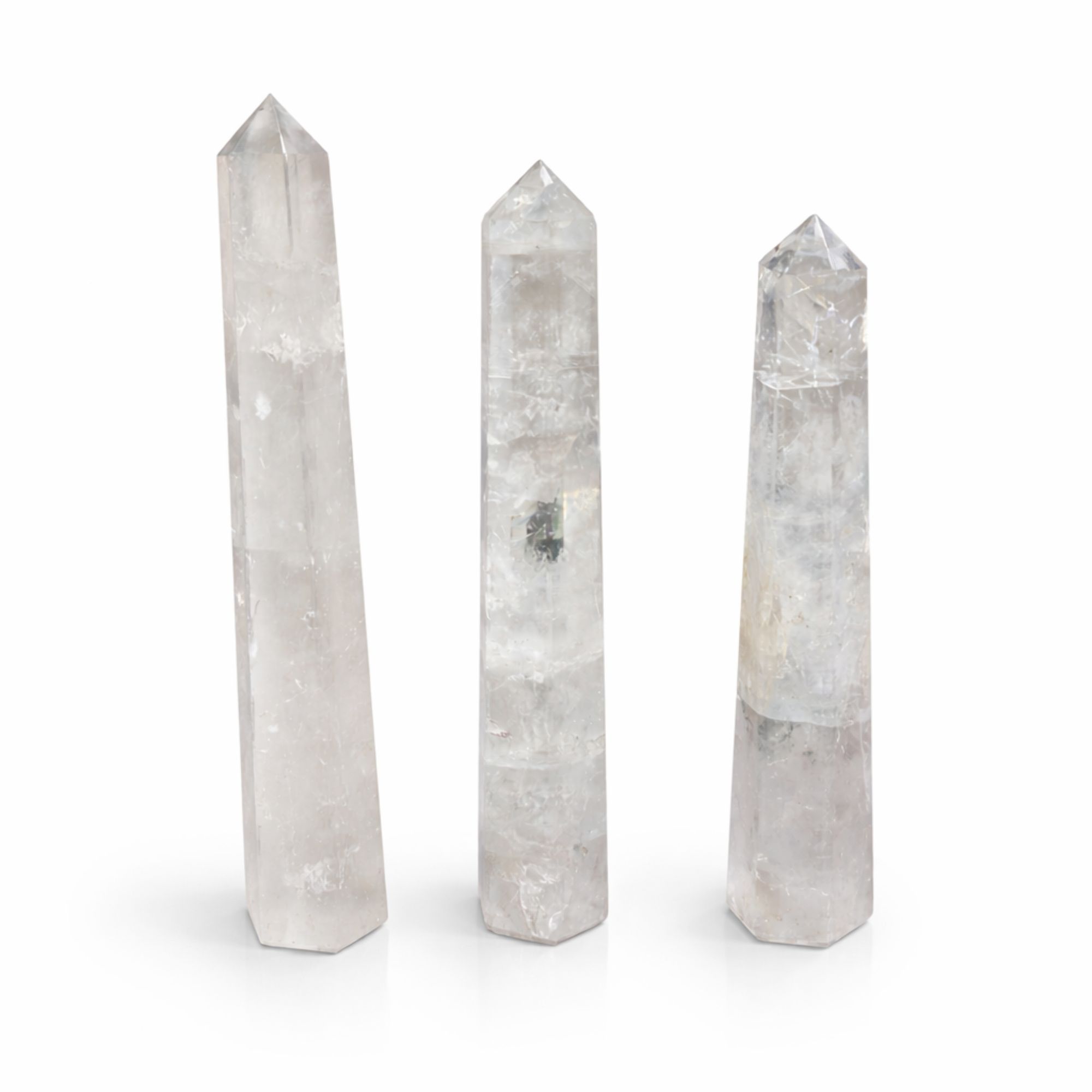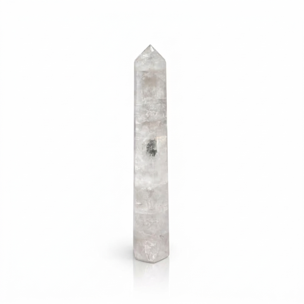 Clear, light-catching tones and a polished finish make this Rock Crystal Six Face Obelisk Point a striking statement piece for any space. The tall six-face shape enhances its natural clarity, creating an elegant decorative accent for shelves, desks, or meditation areas. Believed to help with: clarity, focus, balancing energySymbolises: clarity, harmony, intentionOften chosen for meditation spaces and mindful interiors, Rock Crystal is popular for its clean appearance and timeless appeal.Whether chosen as a thoughtful gift or a personal keepsake, it’s an easy piece to display and enjoy every day.Please note that sizes may vary slightly due to the natural nature of the stone.
