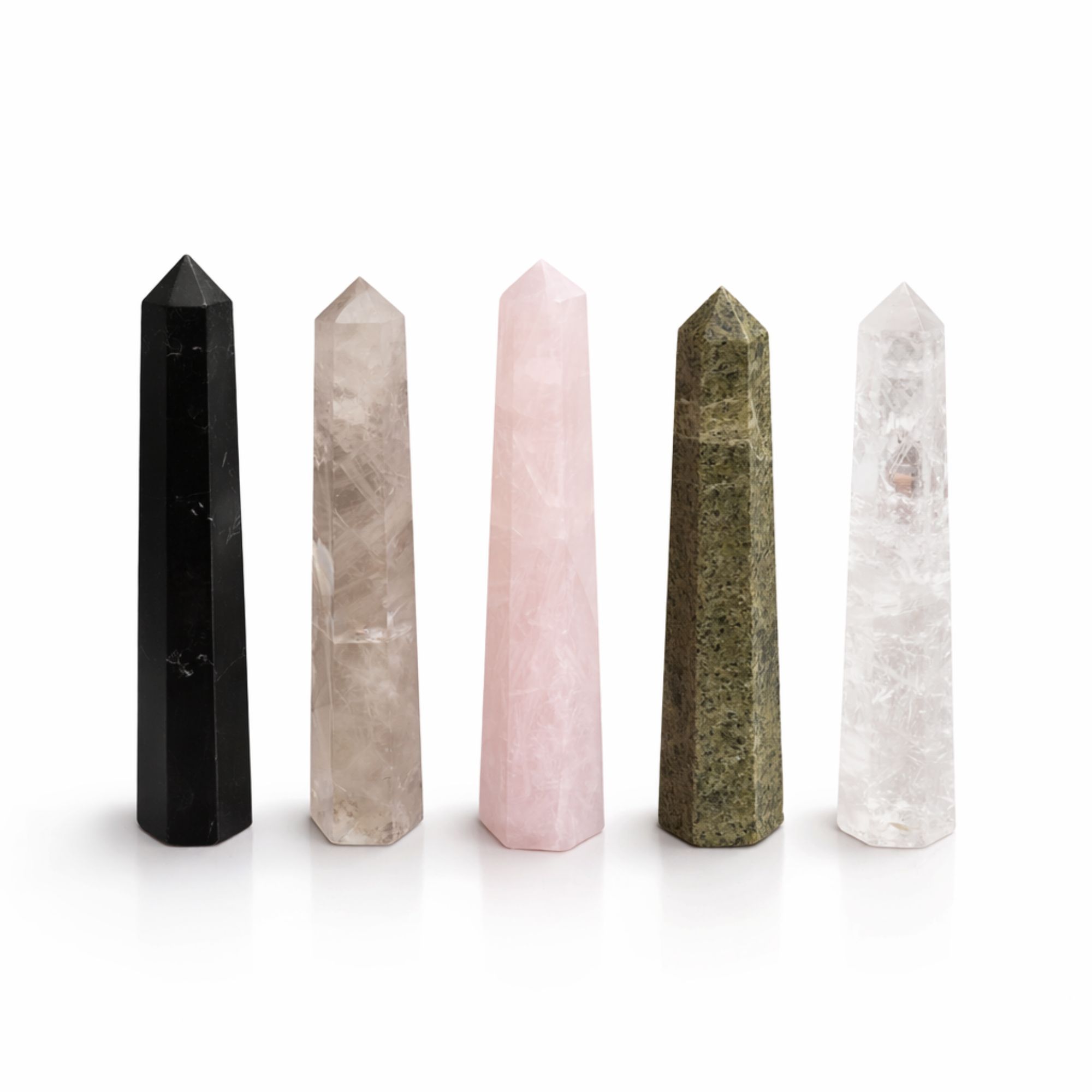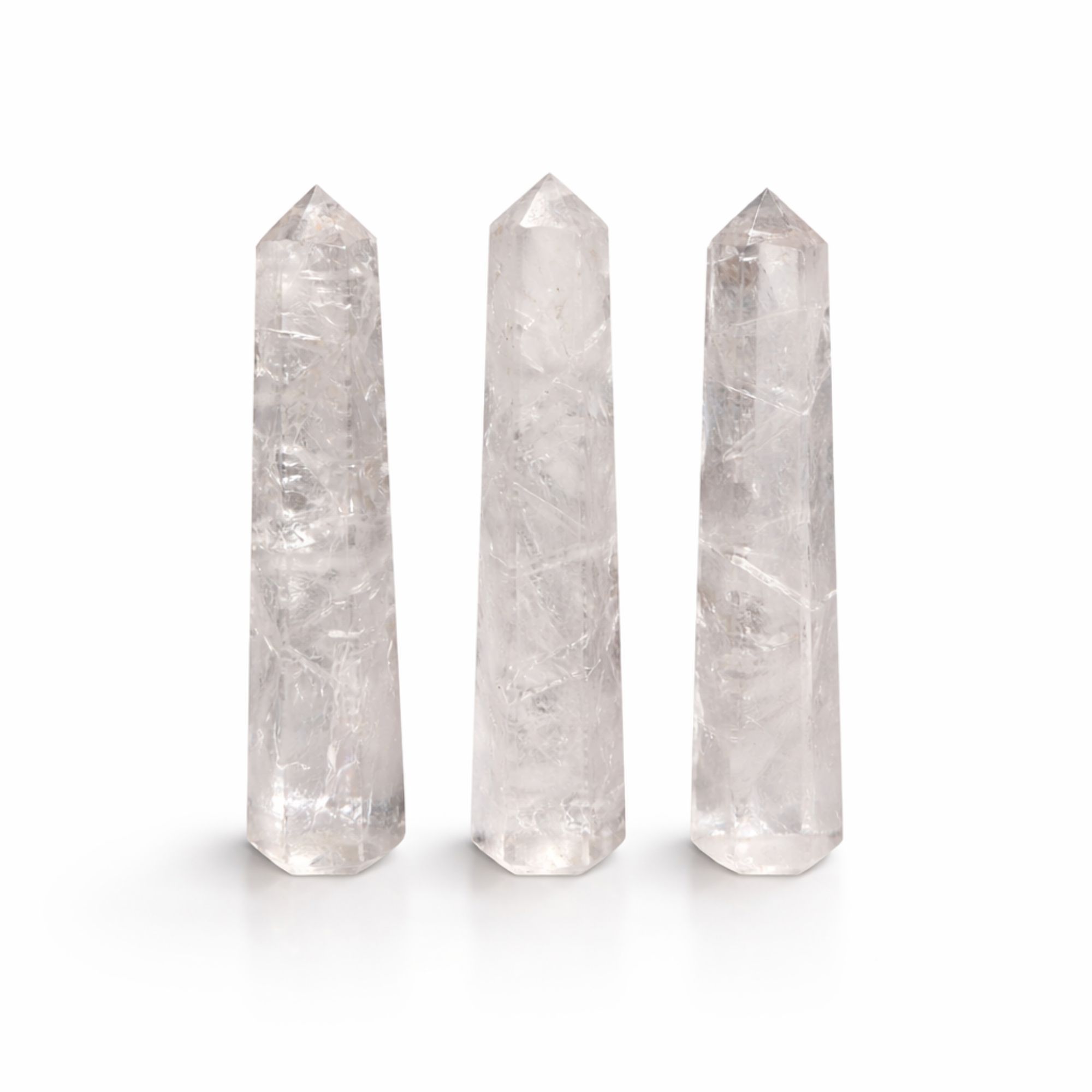 Clear, light-catching tones and a polished finish make this Clear Quartz Six Face Obelisk Point a timeless addition to any space. The six-face shape enhances its natural clarity, creating a clean and elegant decorative accent for desks, shelves, or meditation areas. Believed to help with: clarity, focus, balancing energySymbolises: clarity, intention, harmonyOften chosen for meditation spaces and mindful interiors, Clear Quartz is popular for its versatile appearance and classic appeal.Whether chosen as a thoughtful gift or a personal keepsake, it’s an easy piece to display and enjoy every day.Please note that sizes may vary slightly due to the natural nature of the stone.