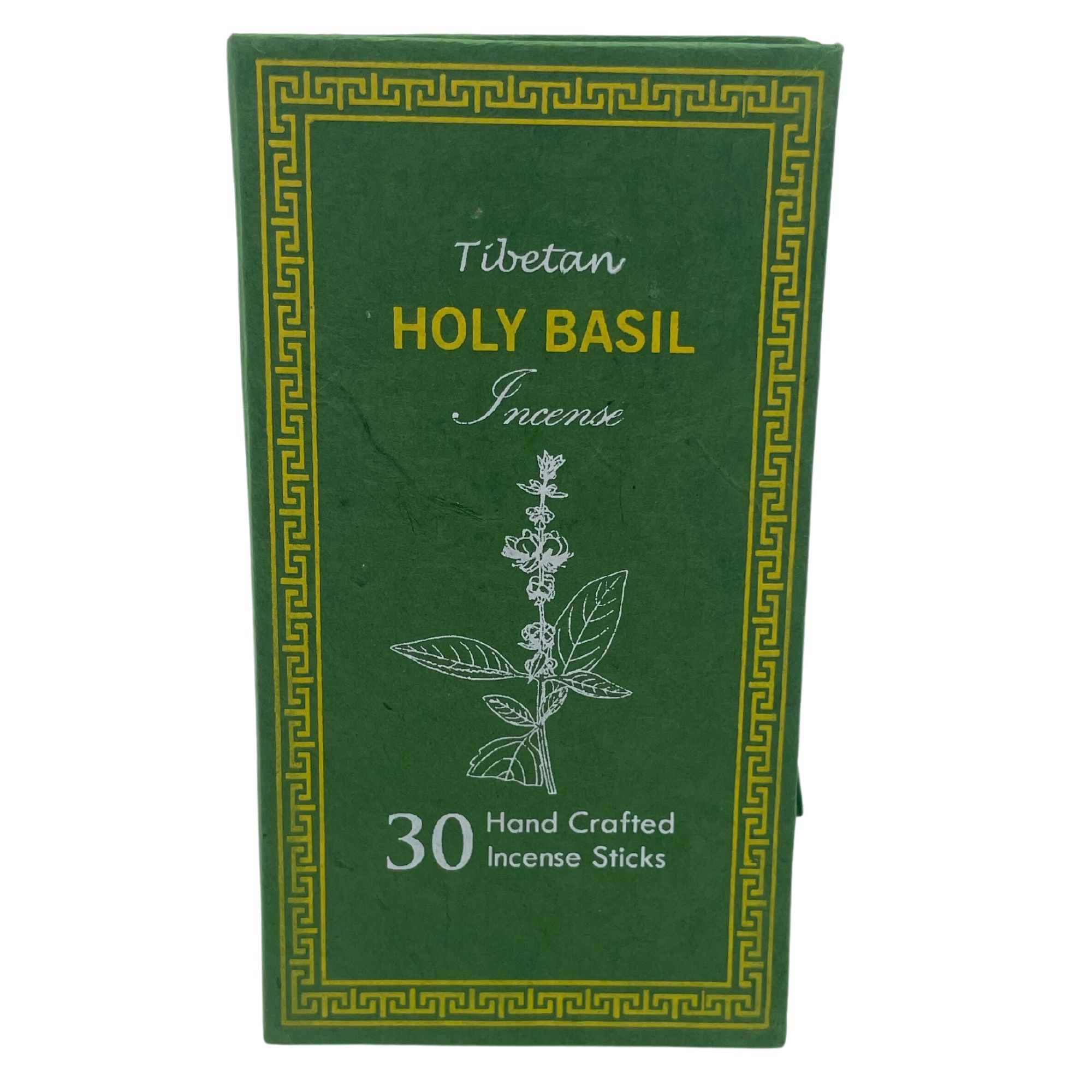 Elevate your room´s ambiance with captivating Sughandit Dhoop Incense Gift Sets,. We take pride in importing these incense collections straight from Nepal, where they are handcrafted with care and thoughtfully packaged.These incense sticks are a blend of nature's finest ingredients. Each of our Himalayan Sughandit Dhoop incense sets comes in a charming box. Inside each box, you'll find a wooden incense holder, 30 fragrant incense sticks, and an explanatory text. Tulsi (Basil) is used in most Hindu housed for worship and is therefore considered the most sacred herb. The aroma of basil is believed to have a calming and soothing effect on the mind and body, and is often used for meditation and relaxation. In addition to its spiritual and aromatic uses, basil is also known for its medicinal properties and is used to treat a variety of health conditions such as colds, flu, and digestive issues.