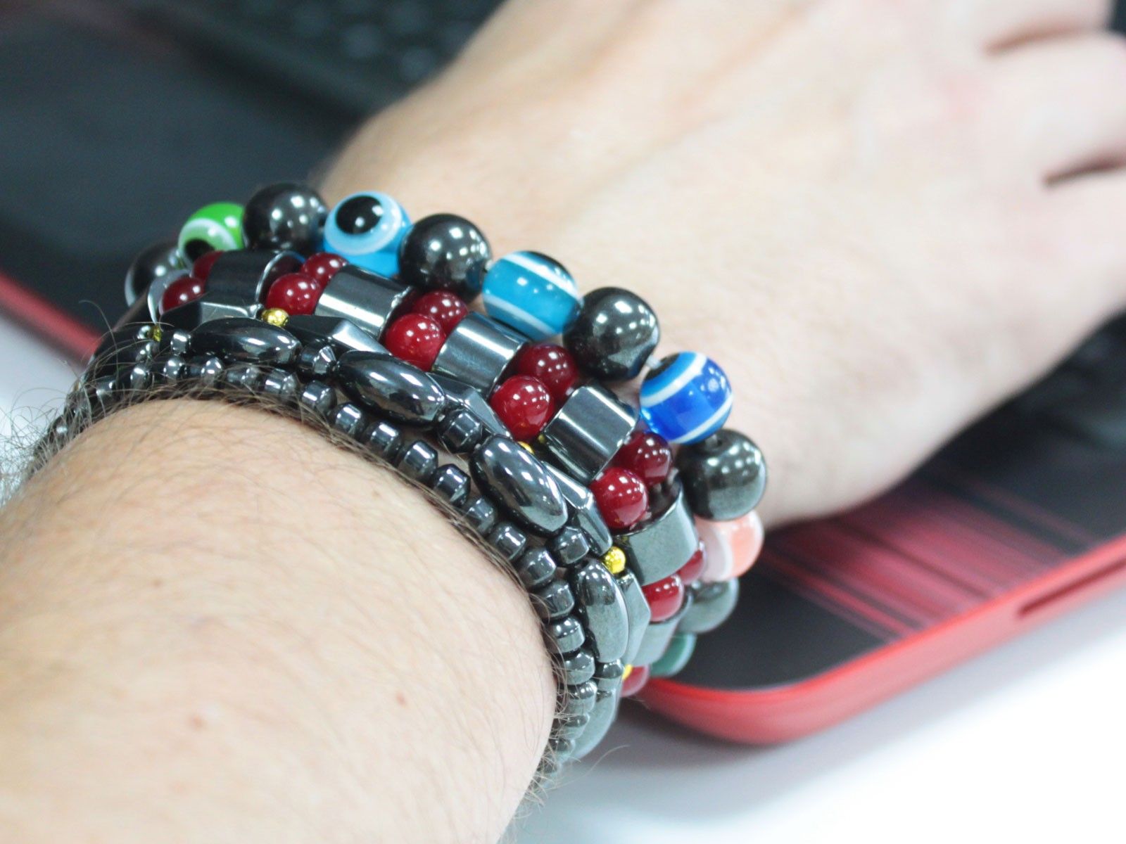This range of Magnetic Bracelets are made with hematite and glass beads to create a quirky and unique look, suited for people who like to express their personality!They come in 6 colour designs to choose from. Enjoy green, blue, white, rose, red or purple. Which will be your favourite? And remember !!! There are always friends you can give gift to and make them happy.Years ago these were hugely popular, with claims of healing, or mystic attraction properties – hematite has lots of magical properties.. with evil eye, colour therapy and power stones ranges you can cater every taste.All of the bracelets are secured together with strong elastic, so it will stretch to accommodate any size of wrist. Not only that, but they're incredibly fun to fiddle with!Spice up your jewellery section and add a bit of colour with these magnetic bracelets, add and order today!
