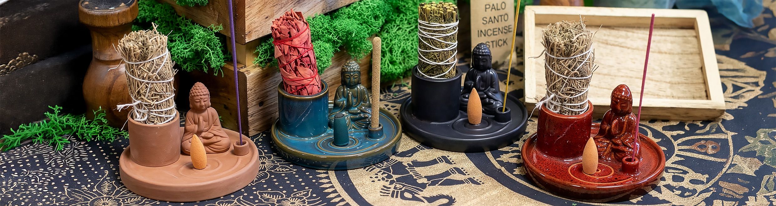 Bring a sense of calm and quiet ritual to any retail space with this Buddha Incense Plate in soft red ceramic. Designed to feel grounding and intentional, it’s a timeless piece that appeals to customers drawn to mindfulness, meditation, and spiritual décor. The plate features a serene seated Buddha figure alongside integrated holders for incense sticks and cones, all set on a smooth circular base. The warm terracotta-red tone gives it an earthy, handcrafted feel that fits beautifully into wellness corners, yoga studios, gift shops, and spiritual collections. It’s subtle enough for everyday use, yet distinctive enough to feel special.Practical as well as decorative, the design keeps incense ash neatly contained, making it ideal for home rituals, meditation spaces, or thoughtful gifting.