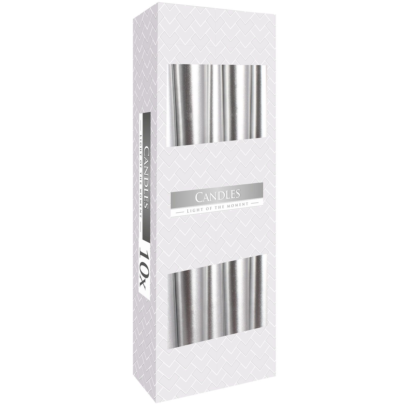 Light of the moment with AWGfits-Dropshipping Taper Candles – Silver Metalic.This is an essential product for every gift e-shop. Also ideal for restaurants, catering and functions. Perfect for creating atmospheric lighting to your costumers' dining table or living space. Taper Candles provide approximately 7 hours burn time with a clean even flame, they do not smoke or drip and are odour and mess free. Made in Poland. Sold in box of 10 candles. Choose from various colours. Candles are over-dipped with colour and made from paraffin wax.* Height: 24.5 cm * Diameter: 2.3 cm * Weight of a candle: 0.53 g * Burning Time: 7 hoursNB: Please read label before use.These Candles are almost too lovely to light. Add them to your product portfolio today to gain new customers and new sales.