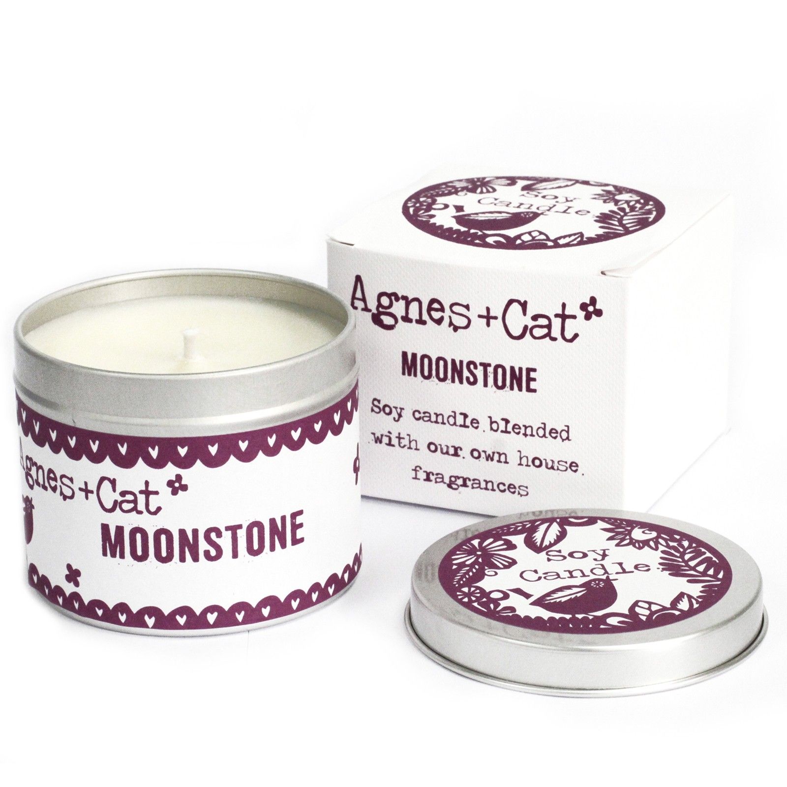 We are proud to introduce a new range of AWGifts – Dropshipping Wax Candles which are made from hydrogenated soybean oil and free of synthetic wax or paraffin. These 200 ml AWGifts – Dropshippping Tin Candles – Moonstone are presented in fancy tins that can be reused once your candle has burned out. They come in pretty box designed in Agnes & Cat iconic style.Upgrade you and your customer's candle life. Soy wax is a perfect eco-friendly alternative. It is so much cleaner and more natural than paraffin candles. A little more expensive but worth it. Soybean Tin Candles burn much nicer and leave a minimal wax residue. These 100% all-natural candles produce 95% less soot too, they are vegan friendly and not tested on animals.Moonstone is a warm masculine fragrance with a fusion of red grapefruit, red sage, saffron and red cedar wood. Top Notes: Red Grapefruit, Lemon, Cranberry Middle Notes: Red Sage, Lavender, Red Saffron Base Notes: Red Cedarwood, Hot Amber, Coffee Beans Designed to make a splendid and caring gift. If you resell candles you should absolutely consider adding them to your portfolio.